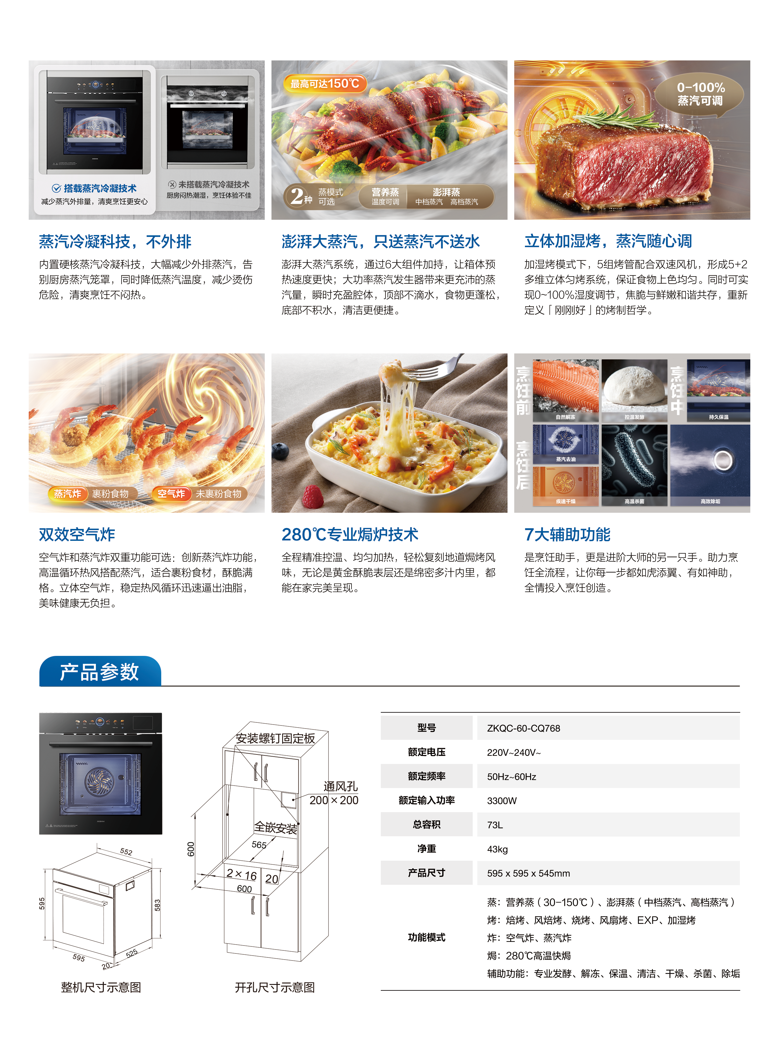R312 烤箱 KQWS-2800-R312 额定功率 2800w 容量 60L 玻璃绝缘三层玻璃门 净重 41kg 产品尺寸(WxHxD) 595x595x520(mm) 开孔尺寸(WxHxD) 560x590x550(mm) 保修: 2 年零件和服务费